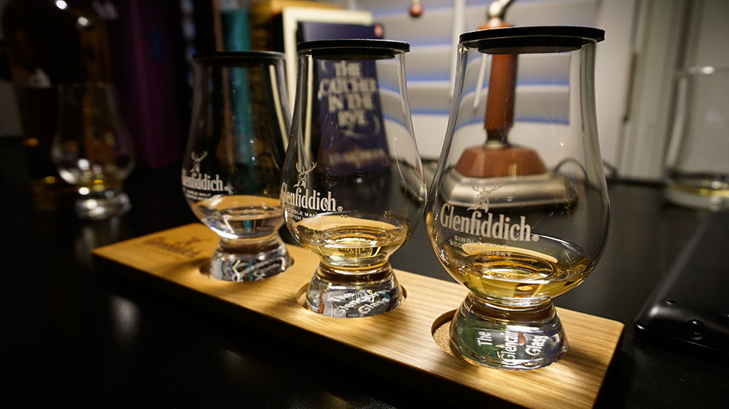 三杯不同酒精濃度的威士忌