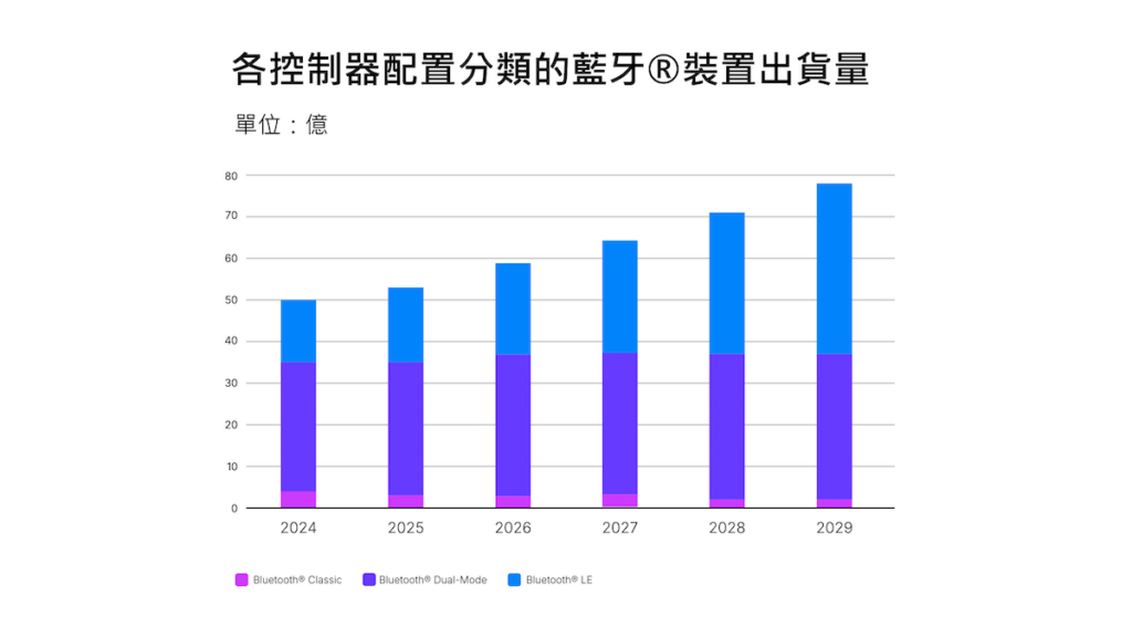 2029 年挑戰 80 億台關卡:低功耗藍牙(Bluetooth LE)裝置以約 22% 的年均複合成長率(CAGR)穩健擴張,推動整體市場規模大幅升級。