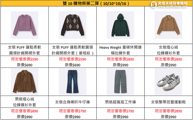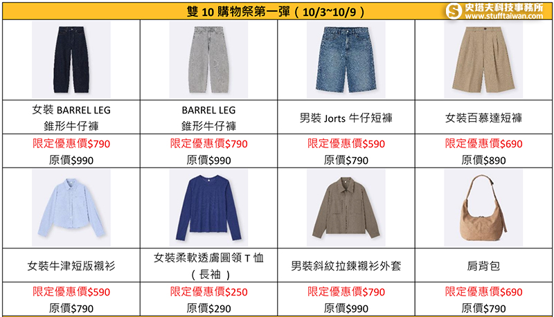 迎接中秋與國慶雙連假,日本流行時尚服飾品牌 GU宣布「雙10購物祭」將於10月3日至16日限時登場,連續兩週祭出秋冬新品優惠,最低只要NT$290,搶攻節慶購物熱潮。