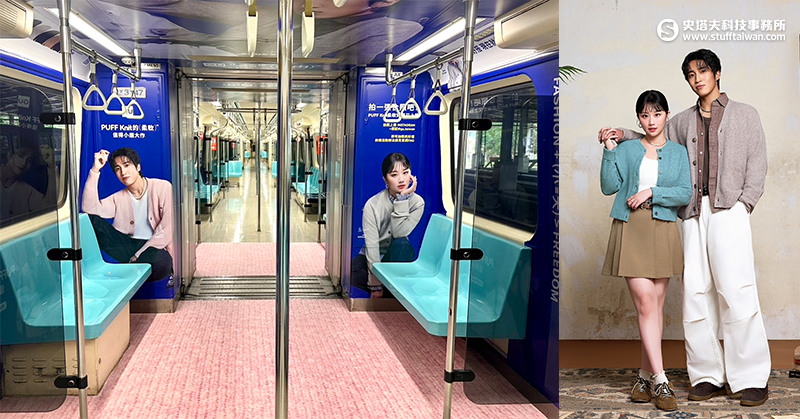 活動期間(2025/9/29-10/28),GU更打造捷運板南線『柔的小題大作』主題列車,邀請品牌好友婁峻碩與焦凡凡化身列車視覺主角,演繹本季主打 PUFF Knit 柔軟針織系列,將日常通勤空間轉化為時尚伸展台。