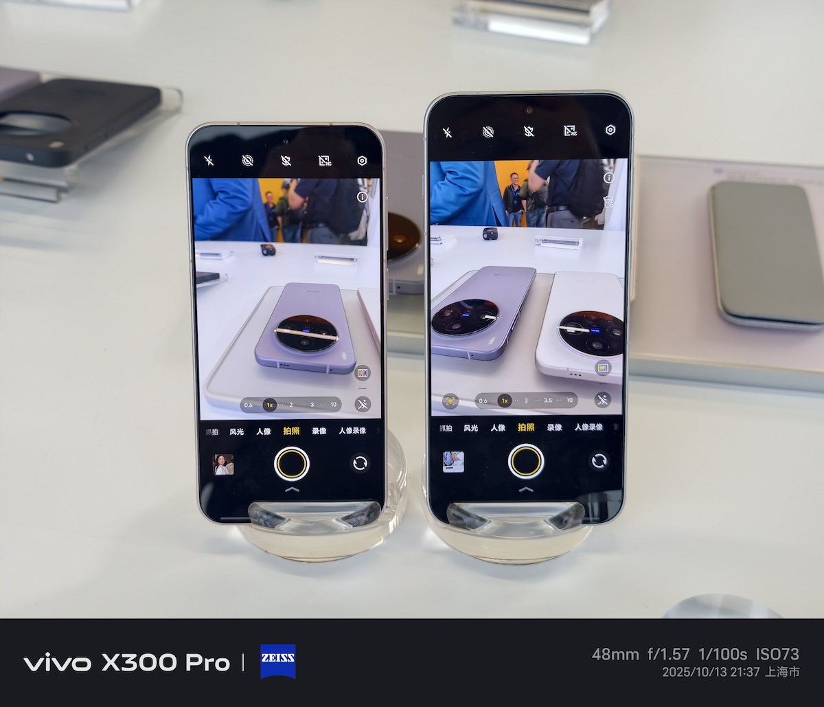 X300 Pro(右)的相機規格是50MP Sony LYT828(1/1.28吋)+200MP Samsung HPB(1/1.4吋)潛望長焦+50MP Samsung JN1超廣角,相機上介面可切換0.6x、1x、2x、3.5x、10x。