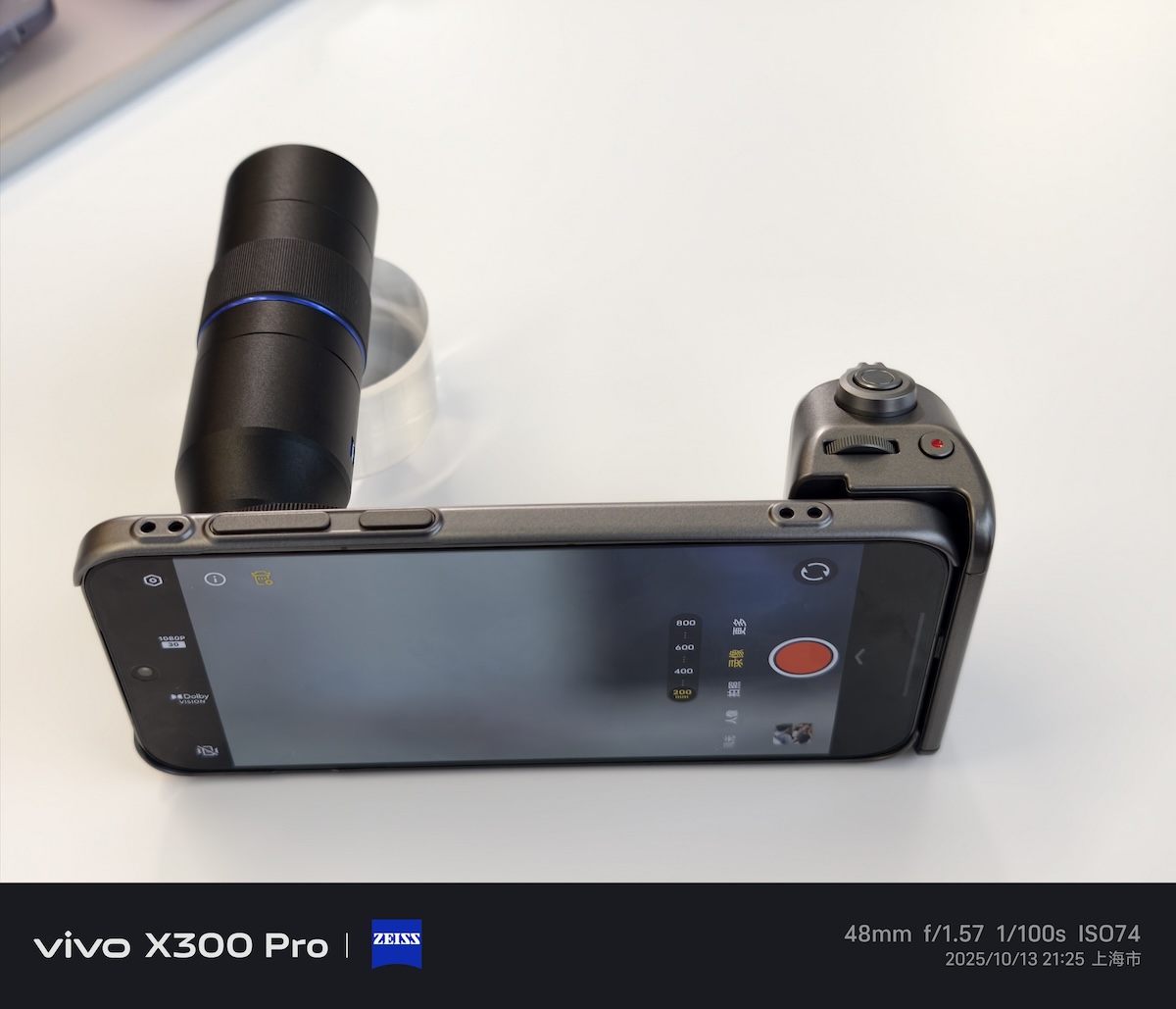 X300 Pro的專業影像套裝,有提供手柄,手柄可調整倍率、自定義(預設為曝光值)、快門鍵、錄影鍵等。