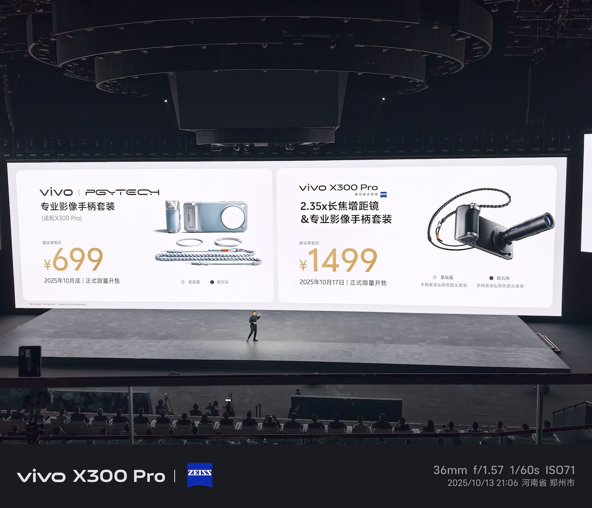 在中國市場,X300 Pro專業影像手柄套裝為699人民幣,約新台幣3,000元;X300 Pro含增距鏡的專業影像手柄套裝為1,499元,約新台幣6,500元。