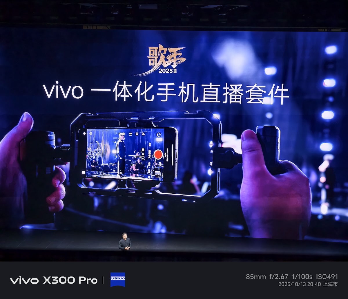 vivo X300發表會十幾台的直播機位中,其中有三台就是用X300 Pro搭配一體化手機直播套件,剛好就坐在我旁邊有看到!今年大紅的歌手2025節目中,部分機位也有使用這款一體化手機直播套件進行直播,vivo更提供企業合作方案。