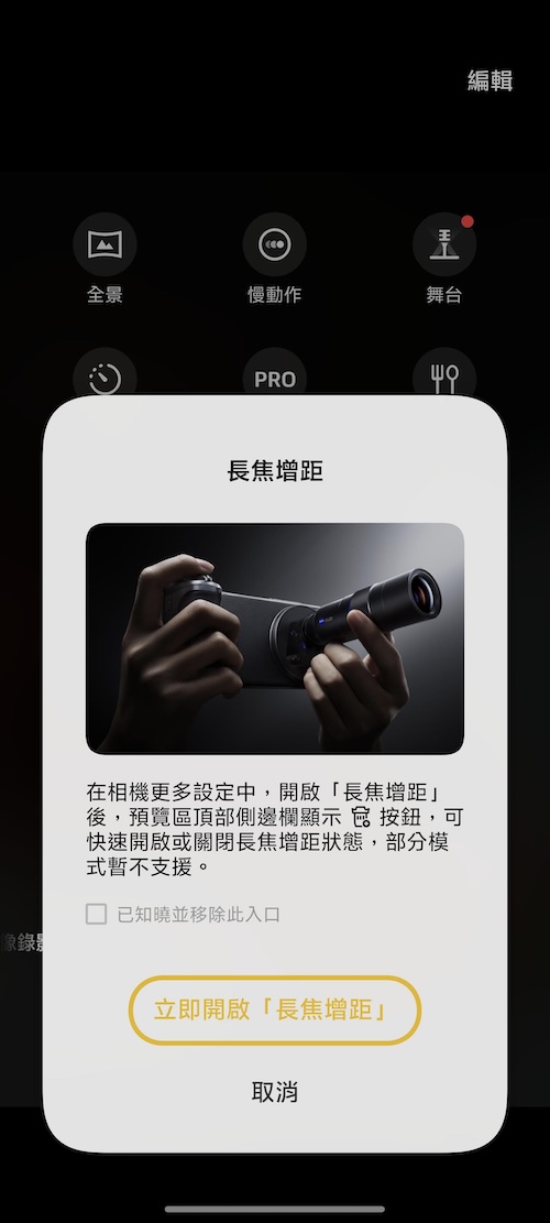 X300系列在相機的更多內,可以看到「長焦增距」模式,是專門給增距鏡使用的攝影模式。