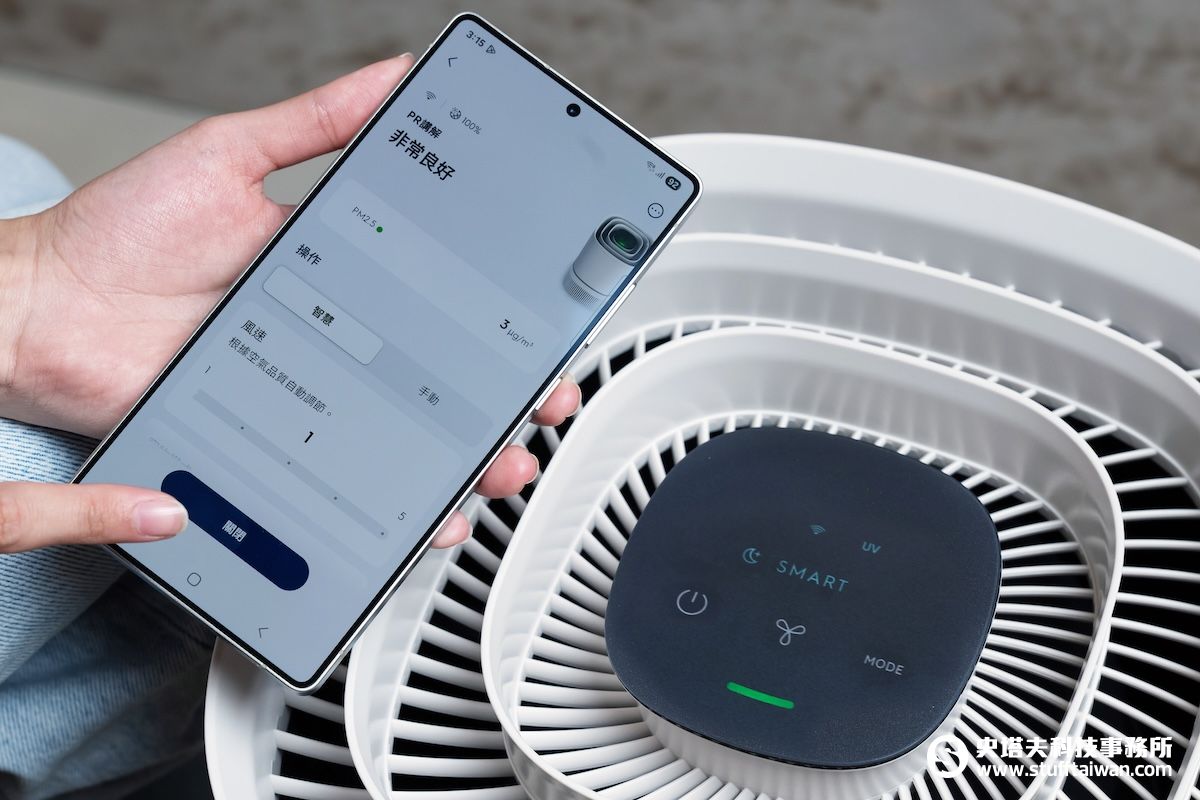 除了強大的過濾效能,這款清淨機在設計上也充滿巧思。3公分的超低進氣口能更有效地吸入地面附近的毛髮,運轉音量最低僅20分貝,並新增了「寵物安全鎖」,防止毛孩誤觸操作面板。使用者可透過App遠端操控,隨時掌握家中空氣品質。