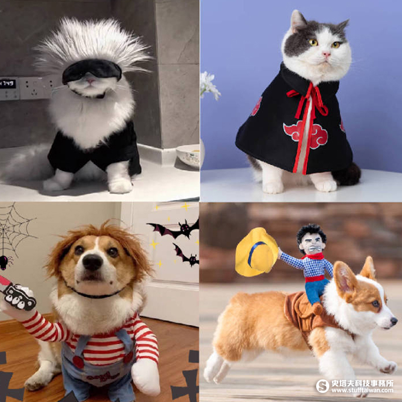 觀察萬聖節即將來臨也同步帶動寵物cos裝扮熱銷,「毛小孩cos直立服飾」一套原價179元,特價174元。