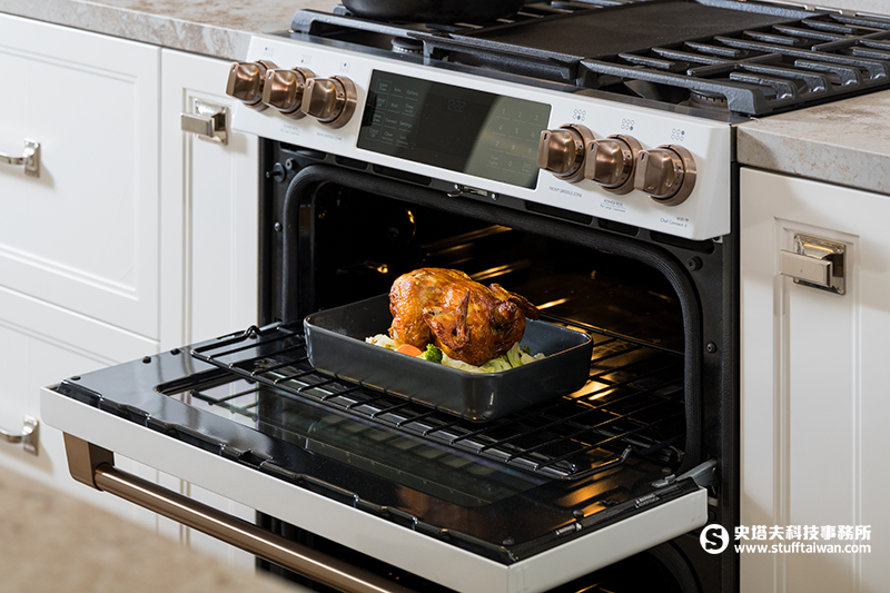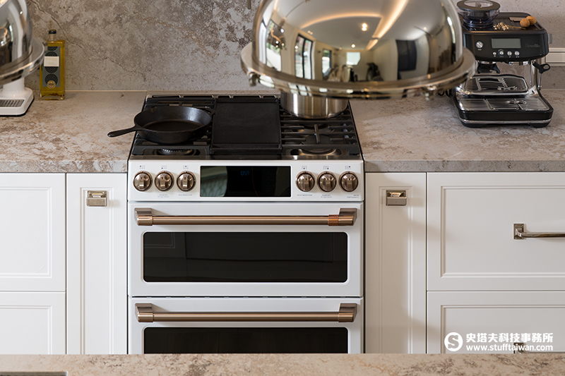 「Café™30 吋六口雙層美式爐連烤」雙層烤箱則採上下獨立溫控設計、並內建 10 種烘烤模式,任何專業料理皆可輕鬆上桌。