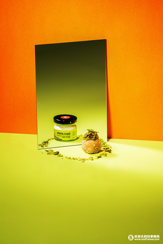「W Tipsy Tea Feat. PISTA CIAO」餐食採用PISTA CIAO之經典「特濃開心果奶酥醬」為靈魂設計,其原料嚴選被譽為綠寶石、僅佔全球產量1%的西西里開心果,源自義大利的豐饒火山地質孕育出無可比擬的芳醇;經過微烘烤與冷磨精製工藝處理的開心果醬釋放炭焙香,激發台北W飯店主廚與調酒師團隊的創作靈感。