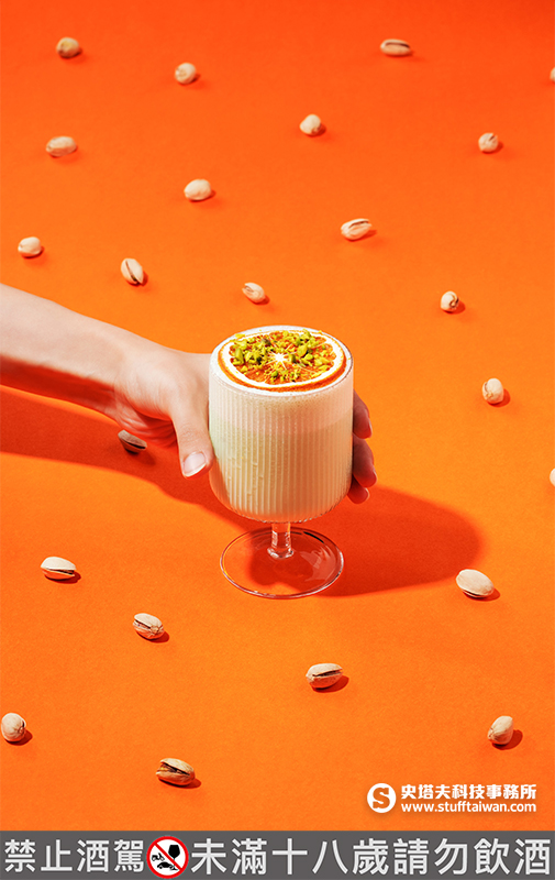 不嗜酒的賓客另可選擇無酒精調飲「CHA & NUT」,英式早餐茶搭配燕麥奶、榛果糖漿與蜂蜜,藉由溫潤奶茶佐餐,襯托開心果的迷人細緻。