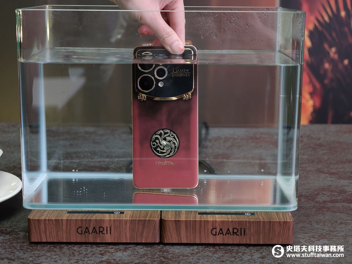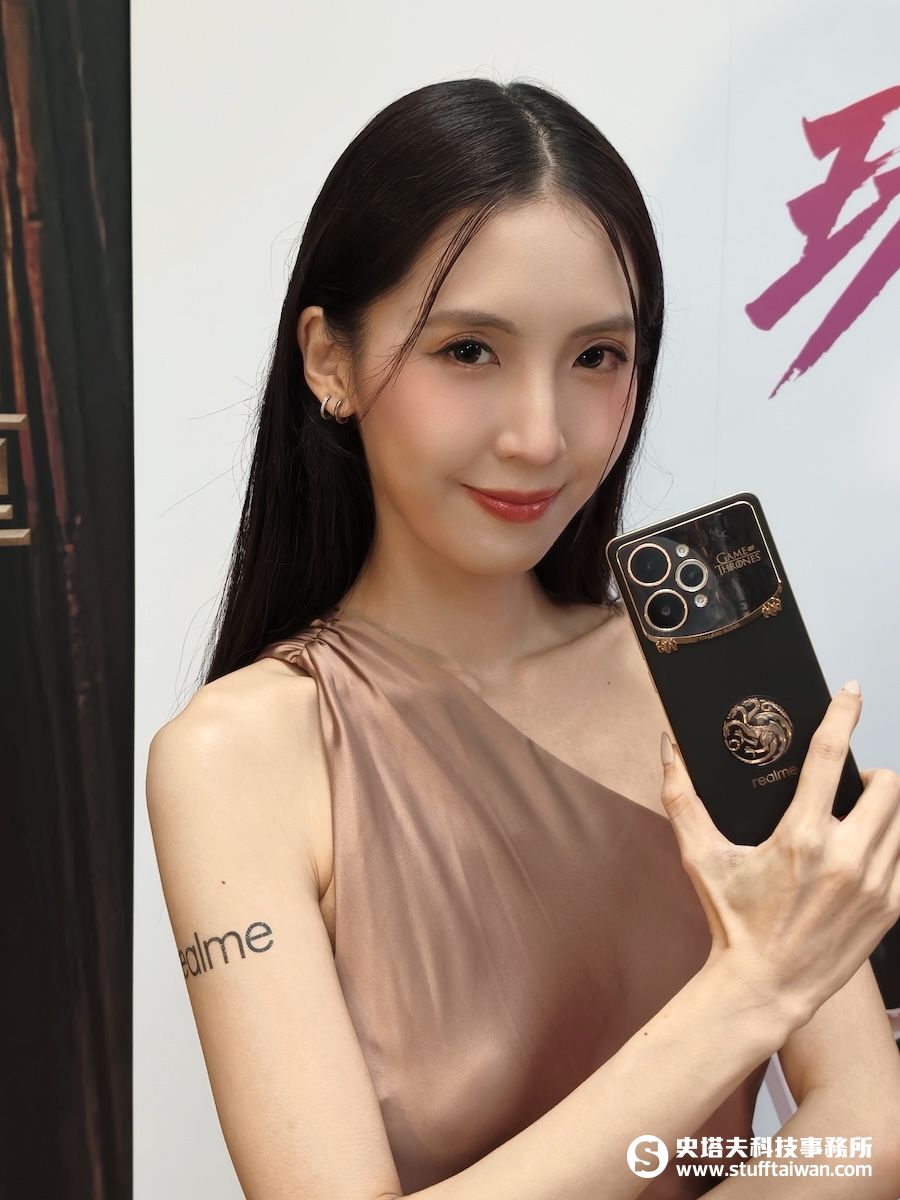 本次發表的最大驚喜,莫過於realme首次與華納兄弟探索全球消費品部合作,推出realme 15 Pro權力遊戲限量版。這款手機採用獨特的「龍焰黑」配色,搭載全球首創的「龍焰變色技術」,當皮革背蓋溫度達到44°C時,機身會從黑色轉為火紅色,視覺效果十足。