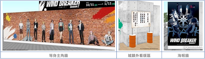 一到現場馬上就被映入眼簾的就是「防風少年主視覺」給帥到,還有跟角色等身比例高的「等身主角牆」也要拍一輪,再到角色們脫下制服,穿上便服展現風格的「街頭區」,點點都是必拍打卡點啊!