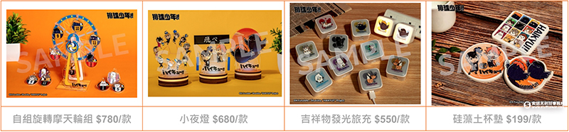 「小夜燈」更是推出必收三款,有十位人氣角色圍繞著一顆巨大排球,彷彿下一秒就要進行全員攻擊,還有日向烏鴉與影山烏鴉的經典身影,準備展現他們的絕佳默契,更有將日向與影山擊球的瞬間定格,亮燈時宛如比賽正要開始的緊張氛圍。