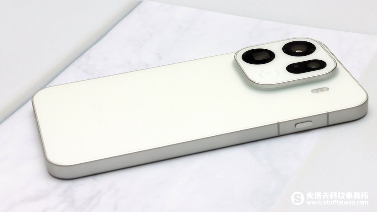 2025年的旗艦機海中,中國各家廠商依然在追求極致的硬體堆疊,但Find X9 Pro卻選擇了一條更為內斂、更具東方美學的道路,捨棄了圓形鏡頭模組,改用矩形模組。機身背蓋霧面絲絨質感的「霜月白」,是一種溫潤、醇厚的色澤。在陽光下不會反射得太過耀眼,同時仍保有玻璃背蓋應有的質感。對於一般使用者更有感的點,是全面改為平面螢幕,去年的四等深微曲面走入歷史。