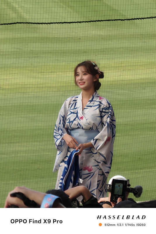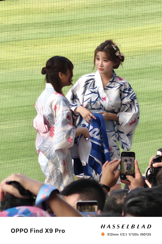 以下這幾張因為坐在15排,距離Angels更遠,只能切換到更高倍率,最高甚至達到512mm(約22x)。抓拍效果依然不錯,但超過10x後就會有AI介入,讓臉部肌膚比較有AI圖片的塑膠感。