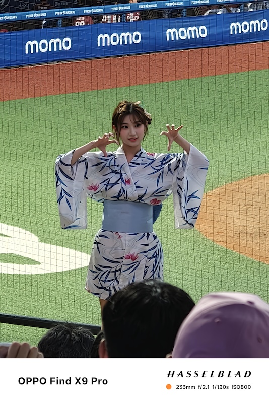 我在9月底取得Find X9 Pro進行實測,有幸趕在棒球季結束前,於新莊球場實拍富邦Angels。可惜的是,還沒有借到「哈蘇增距鏡」組合,之後會再測試增距鏡。