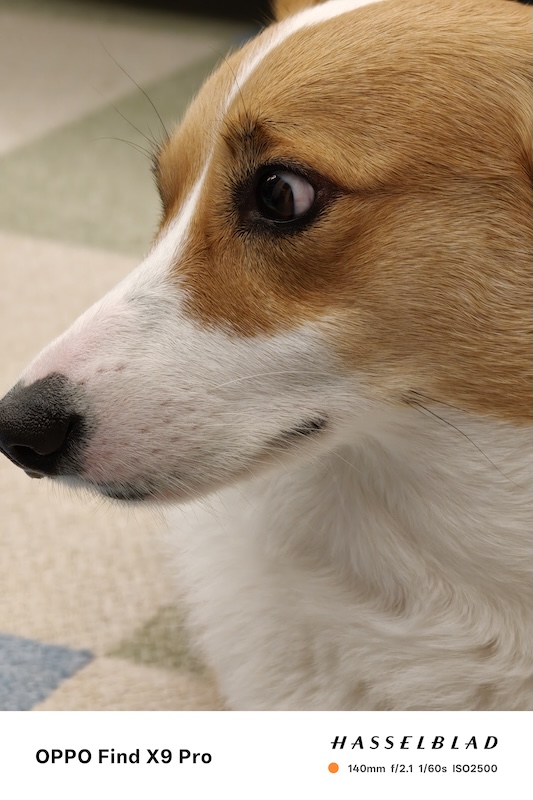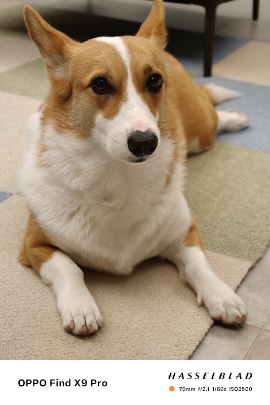 在室內拍攝靜止的柯基,Find X9 Pro也能輕鬆捕捉狗狗的輪廓,以及自然的散景。