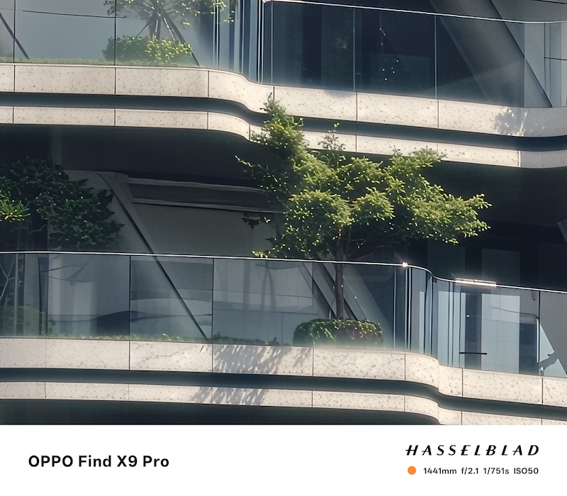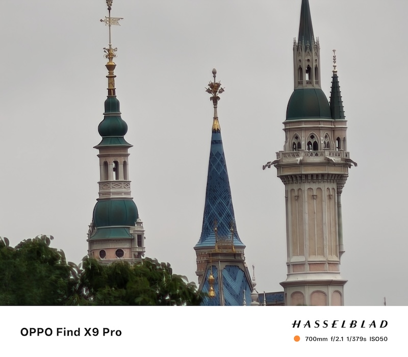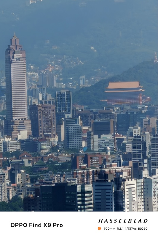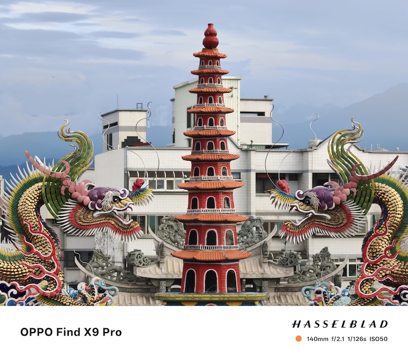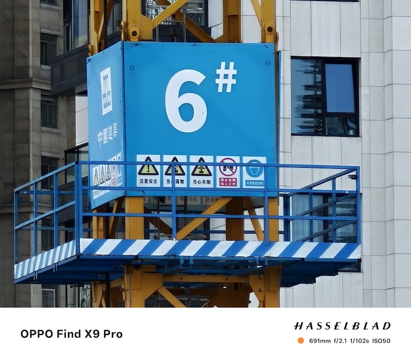 Find X9 Pro長焦原生鏡頭是70mm(3x),支援無損畫質140mm(6x),最高可拍攝120倍變焦,當切換到20倍以上時,手機會開啟「超高解析度長焦」,讓AI介入輔助生成照片,今年許多旗艦機都有類似的功能。手持實測下來,畫質可以接受在30x以內,再往上就會有明顯的AI介入,建議高倍變焦不要拍攝字體,目前AI對於字體的生成效果不佳。