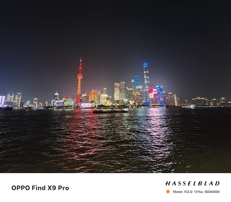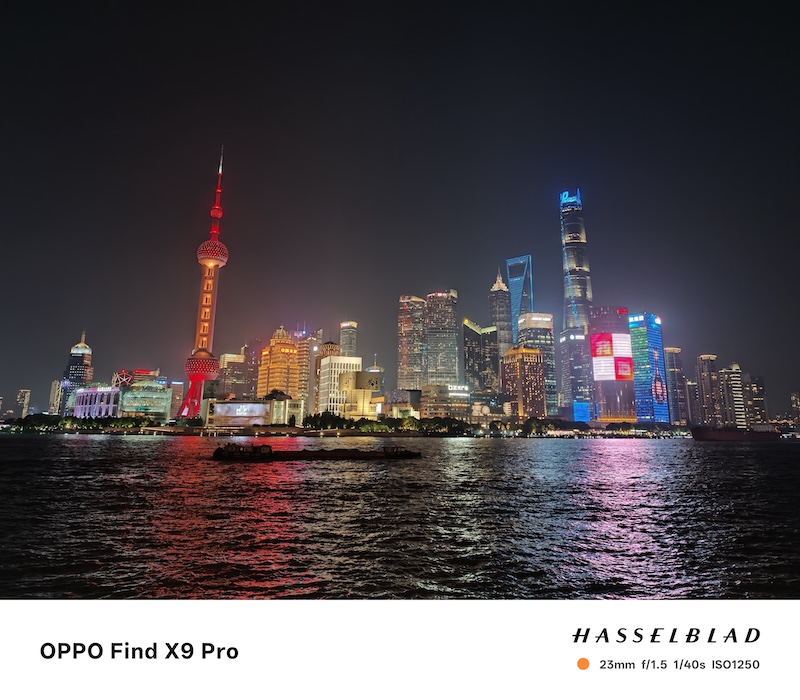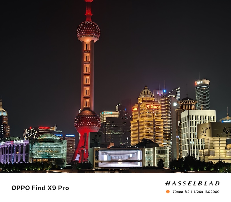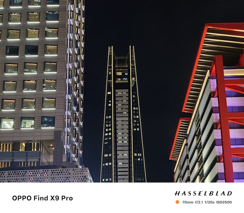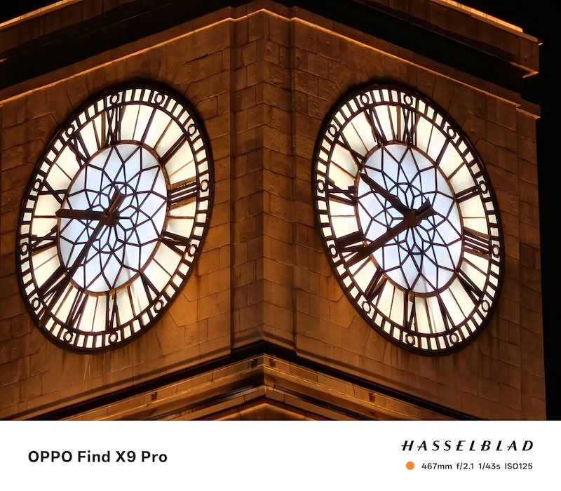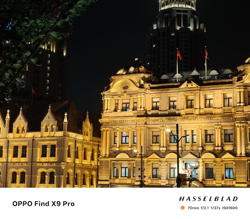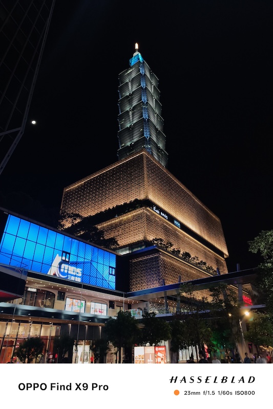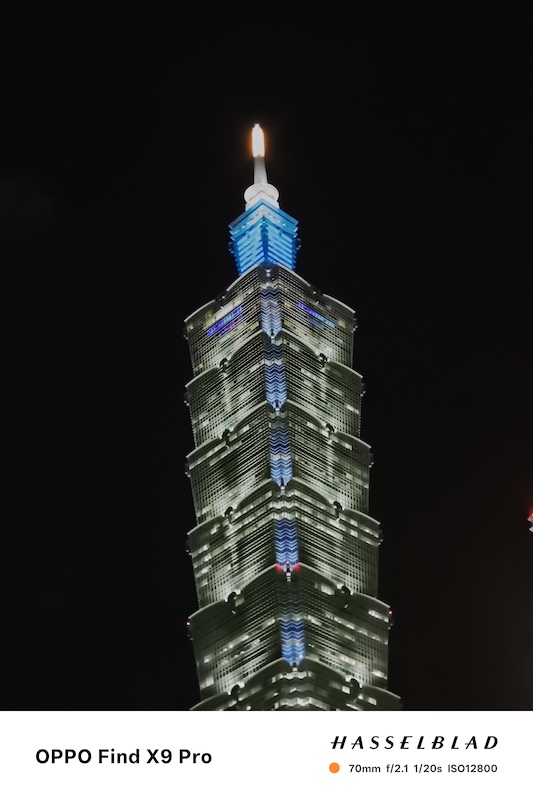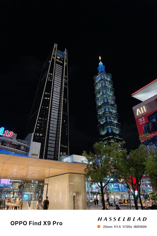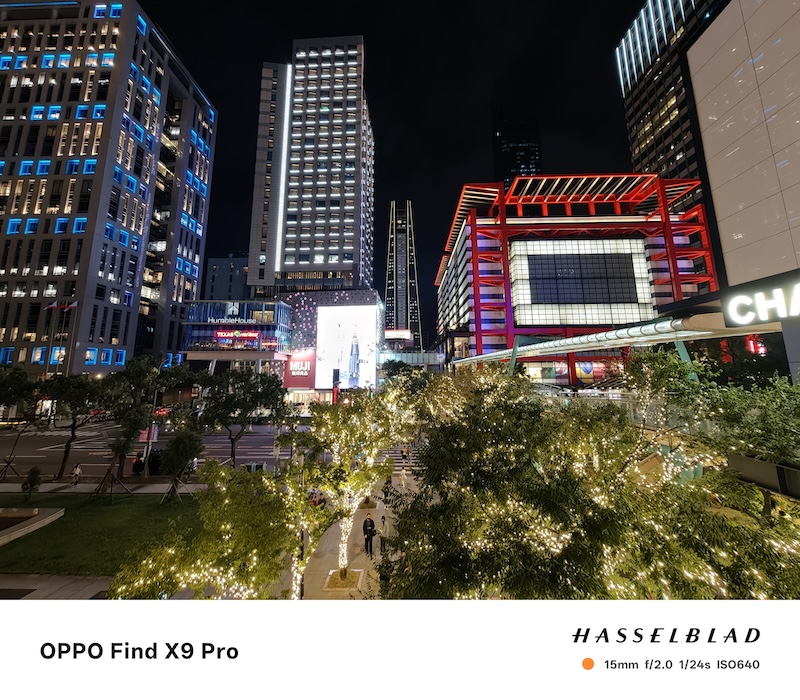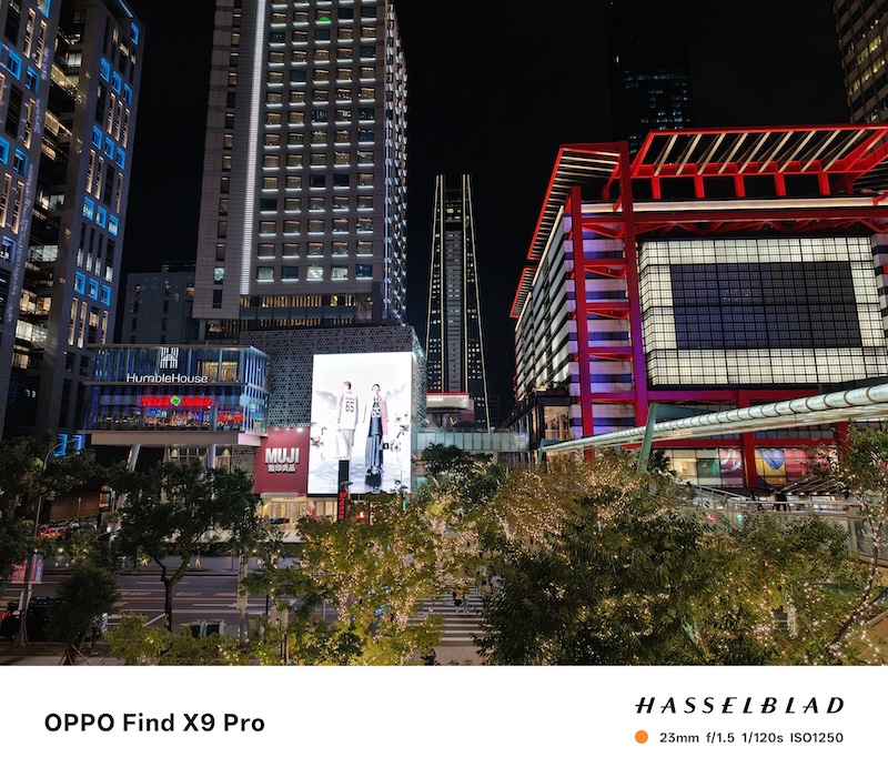 OPPO Find X9 Pro的主鏡頭以F/1.5大光圈與1/1.28吋感光元件為基礎,為夜拍提供極為充足的進光量。當開啟「夜景模式」手持拍攝時,系統會進行約1秒的曝光,而OIS光學防手震則有效確保畫面穩定。