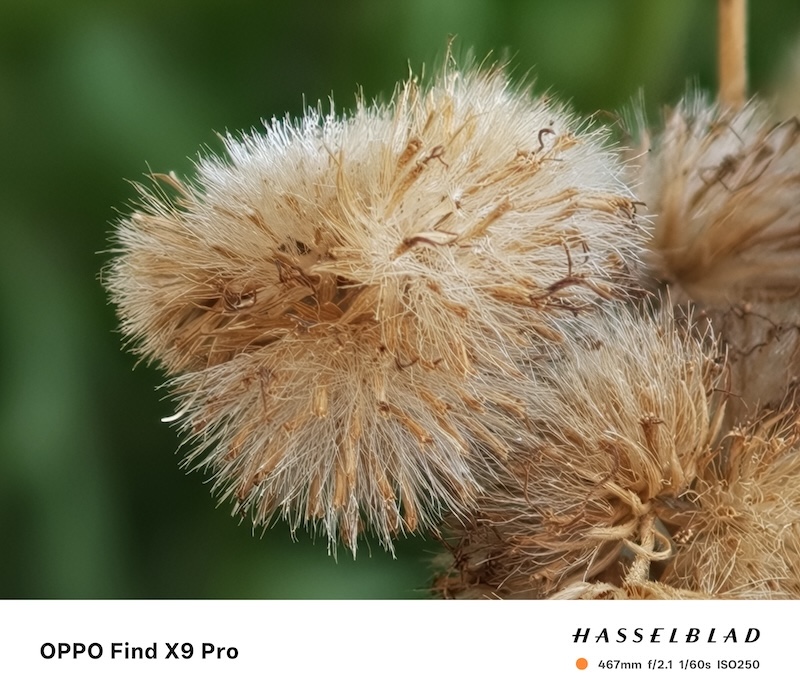 整體來說,Find X9 Pro在長焦微距這塊的表現,對於需要拍攝植物細節、美食特寫,提供了相當吸引的能力,且高倍變焦時畫面相當穩定。然而,它並不是為了極端微距而生,且在光線差、高倍率變焦時仍面臨一些限制。