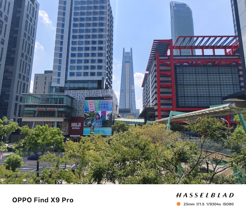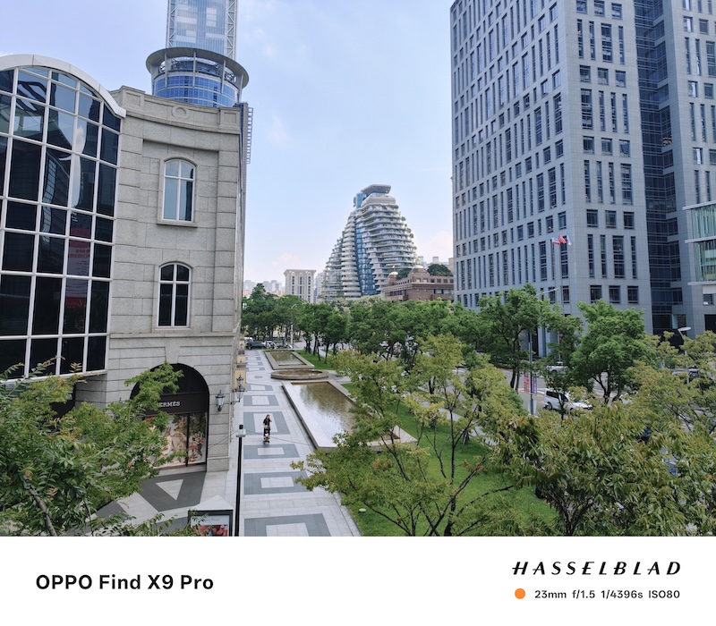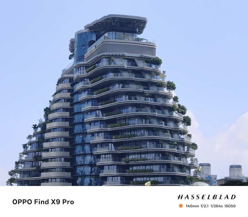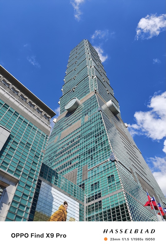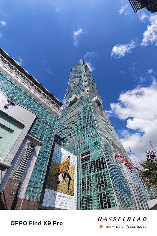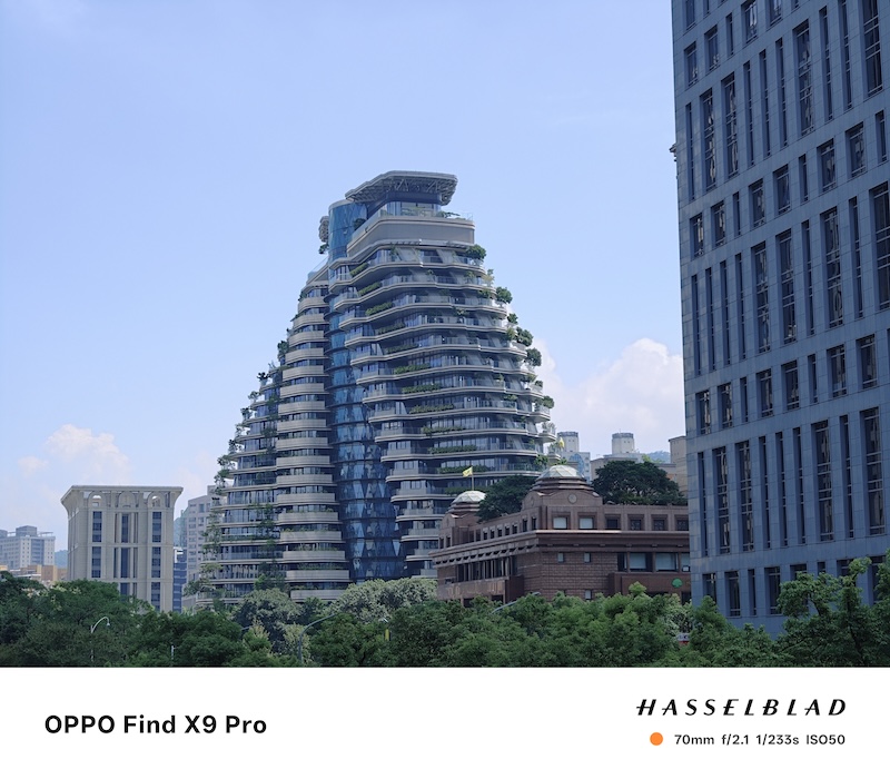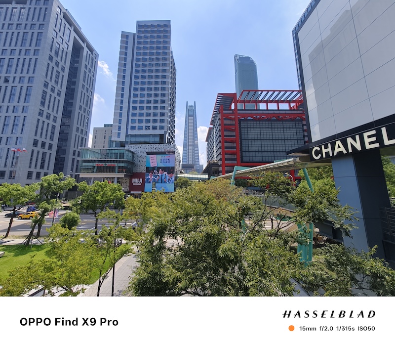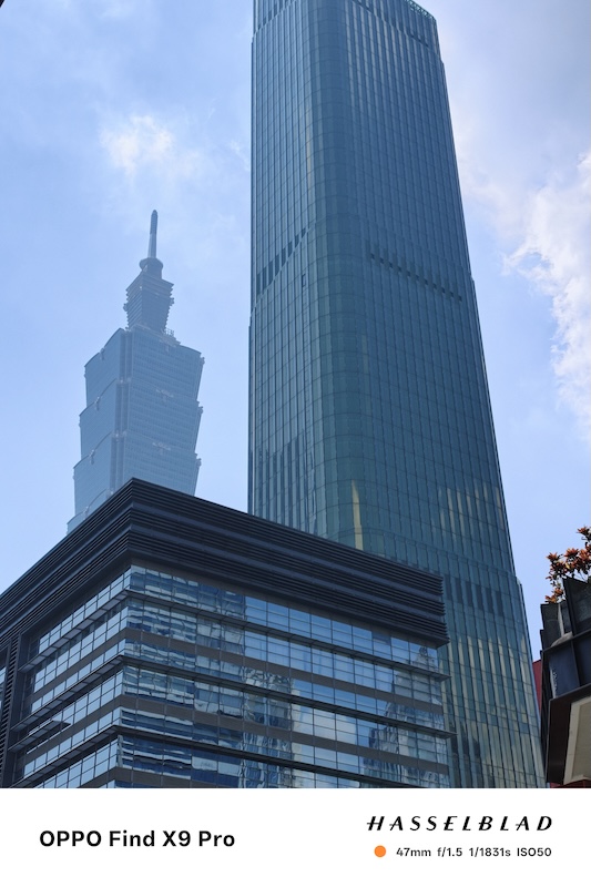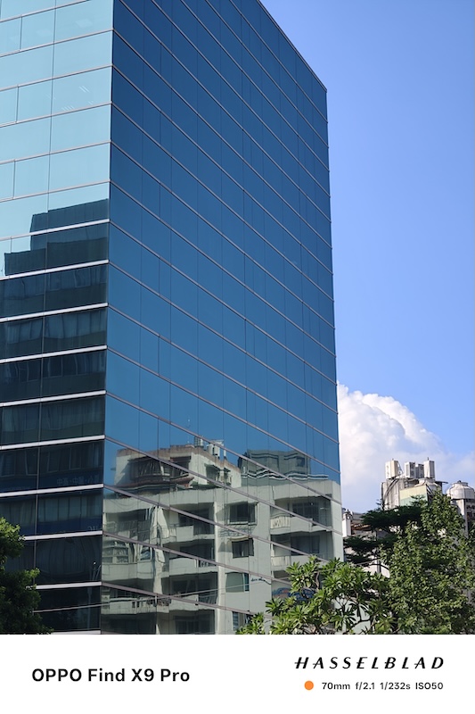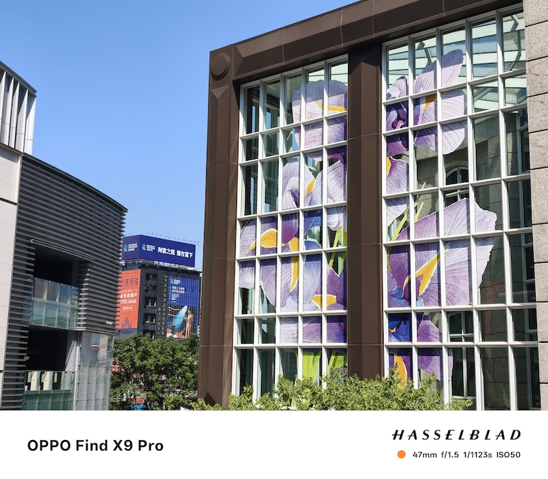 在日間場景使用Find X9 Pro,主相機與超廣角鏡頭在色彩還原與動態範圍上都表現優秀。在陽光直射下拍攝戶外建築、綠地、藍天時,藍天的層次分明、建築立面陰影細節仍清晰,超廣鏡也沒有明顯變形。長焦在3x~6x也保持細節,若使用HDR自動功能,亮部不爆、暗部保留。