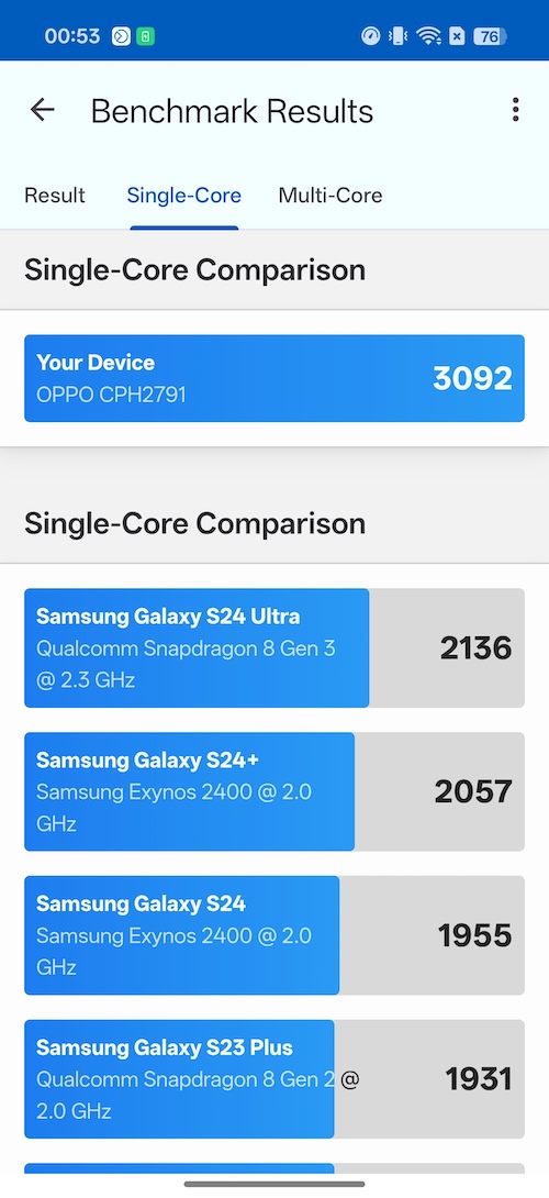 Find X9 Pro跑Geek Bench 6,CPU單核心為3,092分、CPU多核心為9,194分、GPU為20,792分。