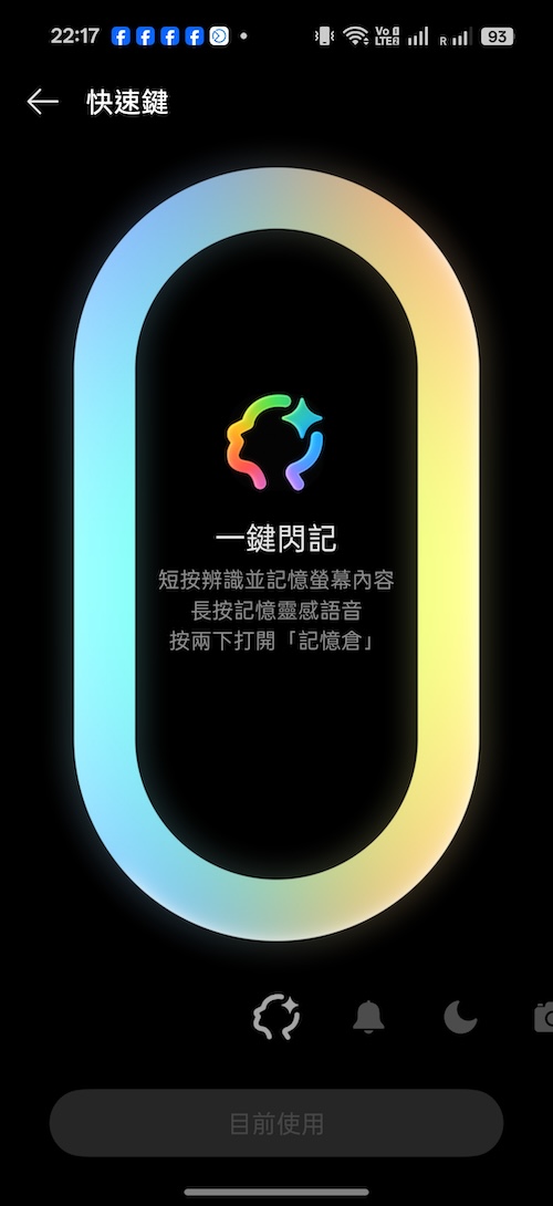Find X9 Pro機身左側的快速鍵,預設為按一下進入「一鍵閃記」,可快速掃瞄當下螢幕的內容;長按可進入錄音,並可快速分析內容;按兩下可進入記憶倉,將各種內容匯集於此。