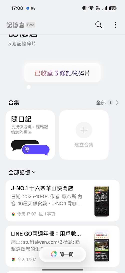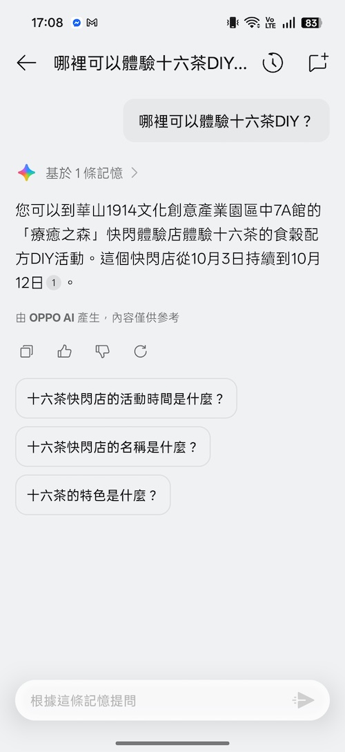 「AI 記憶倉」是OPPO與Google Gemini AI整合後,在Find X9系列推出的智慧資訊管理工具。簡單來說,在於幫助使用者「快速捕捉」手機中出現的各種資訊(如螢幕畫面、文字、網頁、語音備忘錄等),然後系統自動進行分類、歸檔、甚至提出後續操作(如建立行程、待辦事項或搜尋相關資料)。當在螢幕上看到有用資訊,按下側邊快捷鍵即可觸發,AI自動分析當前畫面內容,判定是票券資訊、截圖裡的會議資料、旅遊資訊或語音備忘錄,並將其儲存至「記憶倉」。
