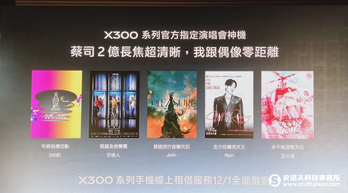 ⬇️vivo公布成為500趴、宇宙人、蔡依林、Rain、王心凌的官方贊助夥伴,也預計在12/1起提供租借活動。