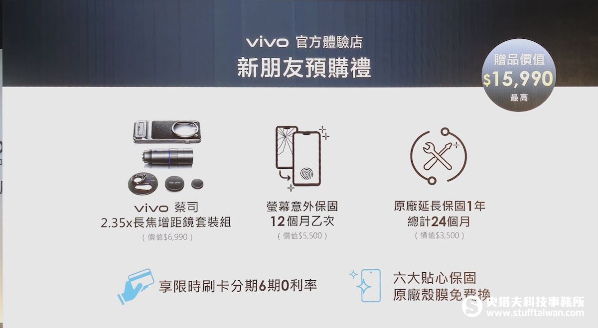 ⬇️僅在vivo官方體驗店預購,能獲得vivo蔡司2.35x長焦增距鏡套裝組、螢幕意外保固12個月乙次、延長保固一年,價值1,5990元。