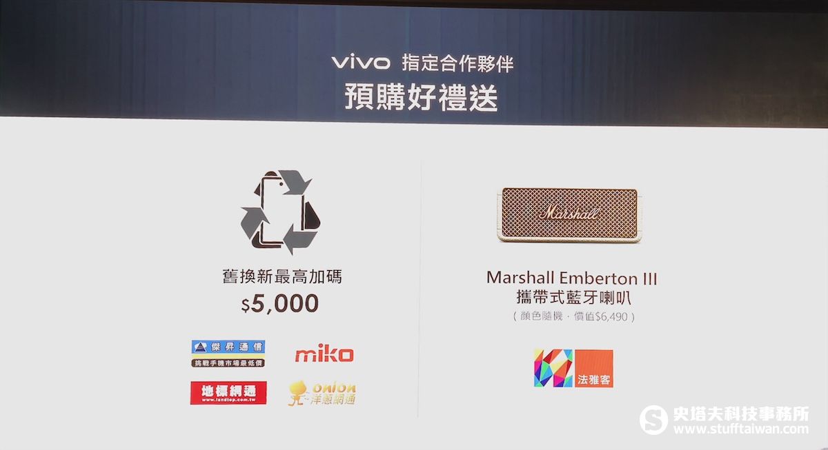 ⬇️vivo指定實體通路加碼5千元,以及贈送Marshall喇叭。