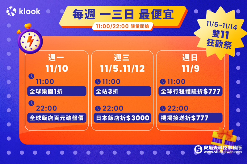 活動詳情:https://www.klook.com/zh-TW/tetris/promo/double11/