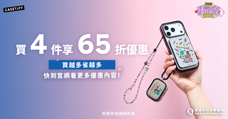 準備好迎接今年最瘋狂的購物盛宴了嗎?CASETiFY 為迎接雙 11 購物狂歡祭的到來,即日起至 11 月 14 日,凡於 CASETiFY 台灣官方網站購買指定產品購買一件享 85 折、兩件享 75 折、三件享 7 折、四件以上更下殺至 65 折優惠1,CASETiFY STUDiO 品牌概念店亦同步釋出優惠活動2,詳情請洽全台七家 CASETiFY STUDiO 品牌概念店公布之資訊。