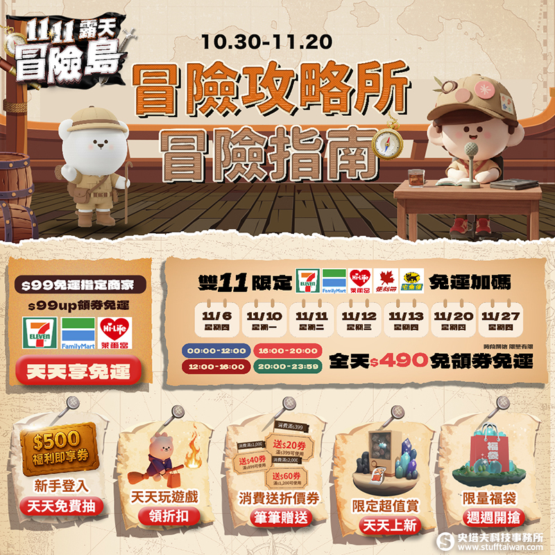以興趣交易平台為定位的露天市集「勇闖露天雙11冒險島」即日起正式開跑!重磅祭出四大活動: