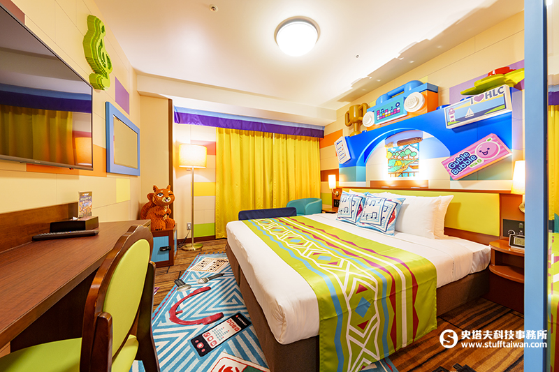 客房共有5種不同主題的房型,每個房間設有兒童雙層床、專屬電視、藏有寶物的箱子,當然還有必備的樂高®積木,讓孩子們盡情探索。