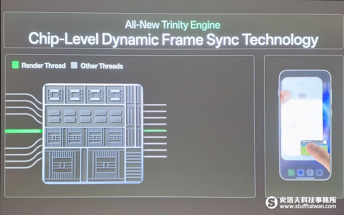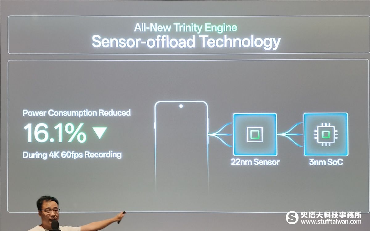 其次,推出了全新升級的潮汐引擎,旨在應對複雜的高負載場景,如打遊戲時接聽電話。潮汐引擎通過智能調度CPU和內存分配,保證流暢性。一個核心技術突破是芯片級預測,在底層芯片級去預測每一幀更新的情況,並透過動態插幀技術,在高負載場景優化流暢度提升30%以上。另一個技術是Sense Offload,它將傳感器任務交給算力更強的SOC,有效降低4K/60Hz錄影下的功耗達16.1%。