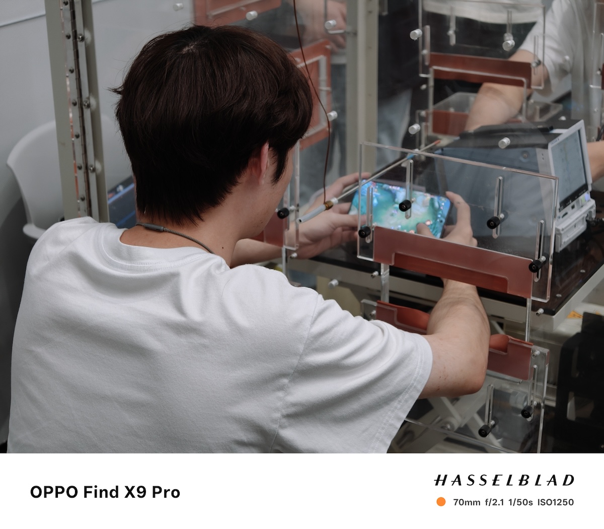 在電池蓋的研發中,例如Find N5摺疊機使用的背蓋,在高分子材料上投入巨大努力,將其厚度控制在0.35mm,是目前世界上最薄的無線充電電池蓋,相比Find N3降低了超過50%,重量僅約6g。透過穿刺等極限測試,證明其具有超強的對電池的保護能力和自身堅韌性。材料的耐候品質也是研發初期就納入考量的重點,通過氙燈老化、Q-Sun加速老化試驗機等設備,模擬太陽光照、紫外線、高溫高溼、暴雨、露水等環境,在幾天或幾週內再現戶外數月甚至數年造成的損壞,以篩選出更能經久不新、滿足OPPO Next Level品質要求的材料。