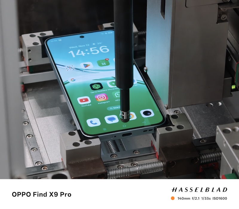 在生產環節,OPPO為了保證精準製造的落地,是業界最早一批推廣自動化的企業,如今SMT產業自動化率已超過95%,基本實現無人化作業。例如,在對裝配要求極高的精密切割工藝中,Find X9 Pro上的小主板集成了超過1,900個電子元器件,其中30%的電子元器件大小如頭髮絲一般,也能做到精準焊接。在螢幕裝配上,OPPO對螢幕進行了100%的像素級二次顯示校驗,保證每臺屏幕亮度均勻。為了顯示面積的最大化,採用第三代芯片級封裝技術和D掃描定型的方式進行螢幕組裝,並採用業界首創的底部半標製超出平板蓋板的方式,既保證CPU與中框的安全距離,又多加了一次物理保護,確保手機安全。可以說,OPPO的製造已經達到公釐等級。