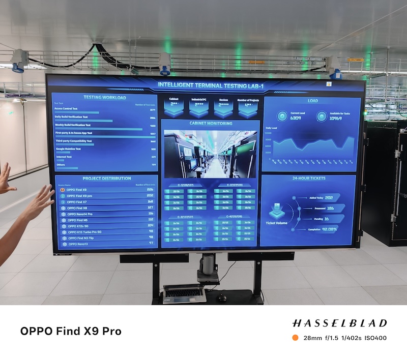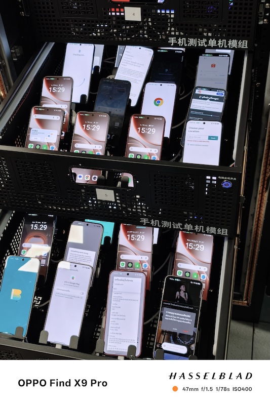 在品質管控方面,實驗室是高度自動化的。OPPO部署了超過2萬臺手機(涵蓋400多個機型),並通過後端PC連接到自動化測試平臺,來進行內核研發代碼的穩定性卡控、核心功能檢測、三方應用兼容性測試以及長時間的應用穩定性壓力測試。