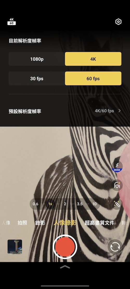 未裝上蔡司2.35x長焦增距鏡前,X300 Pro相機是顯示0.6x、1x、3.5x、10x等倍率。裝上增距鏡後,抓拍、錄影、縮時、專業預設200mm、400mm、600mm、800mm且最高到1150mm。