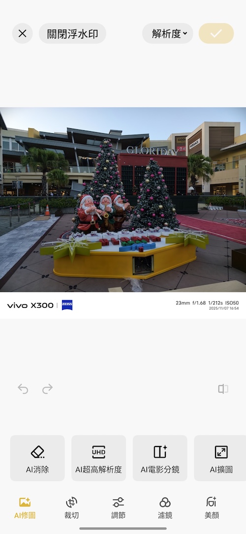 裝上蔡司2.35x長焦增距鏡後,相機畫面右上角必須開啟為增距鏡模式,接著就能在所有拍照、錄影模式中啟用增距鏡。對比OPPO Find X9 Pro目前只能在增距鏡模式中使用,X300系列的使用範圍更全面。