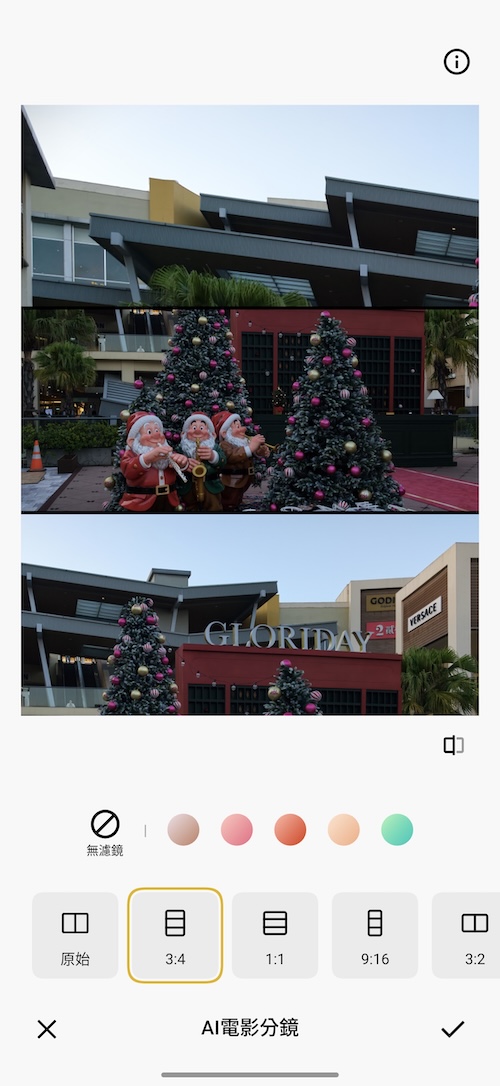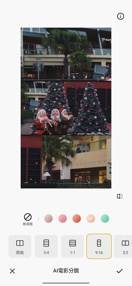 AI電影可自訂為各種輸出的比例,並直接套用濾鏡。