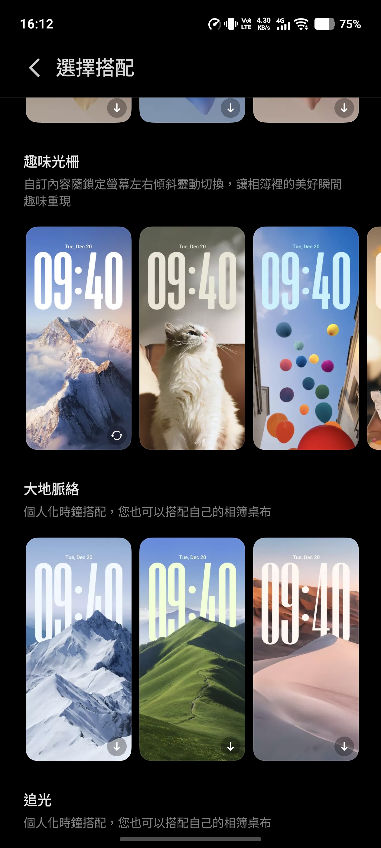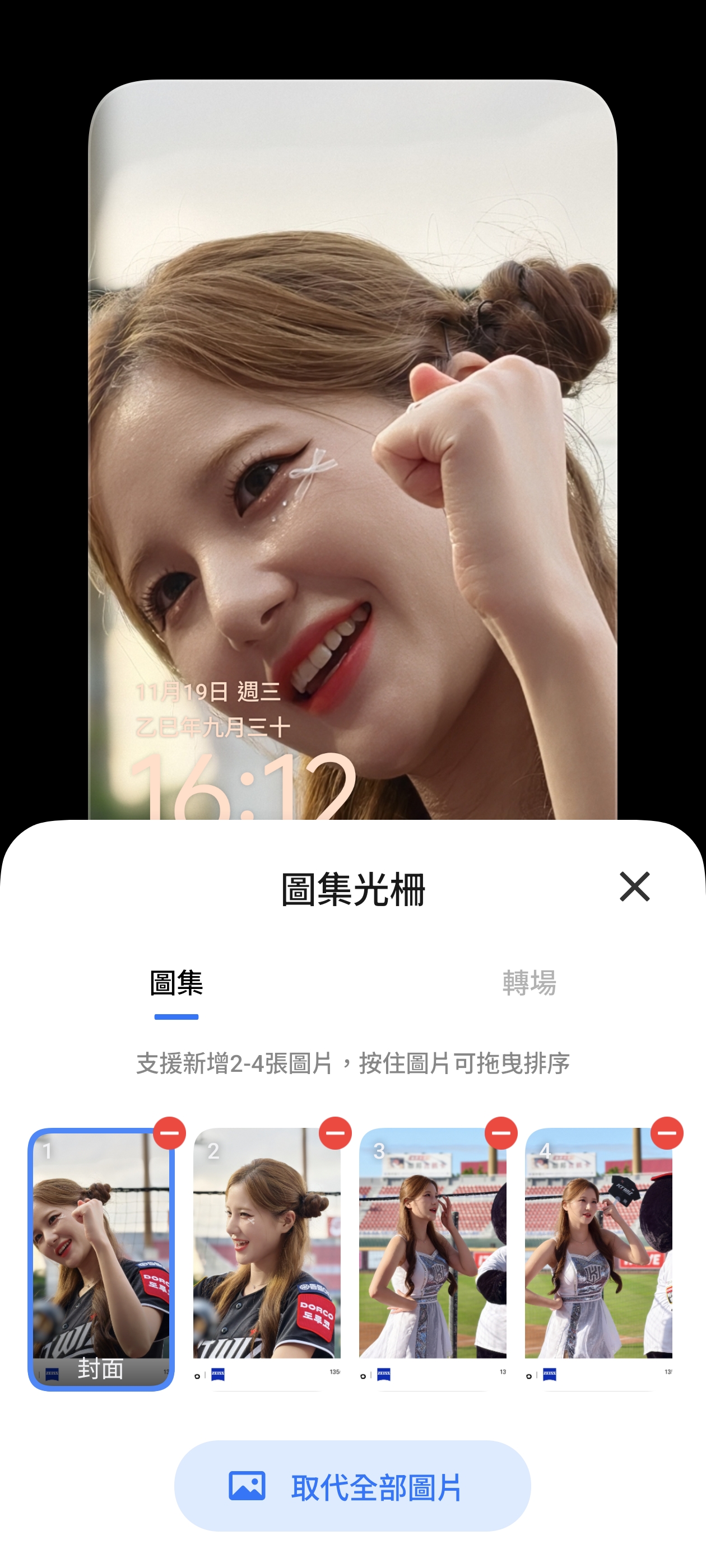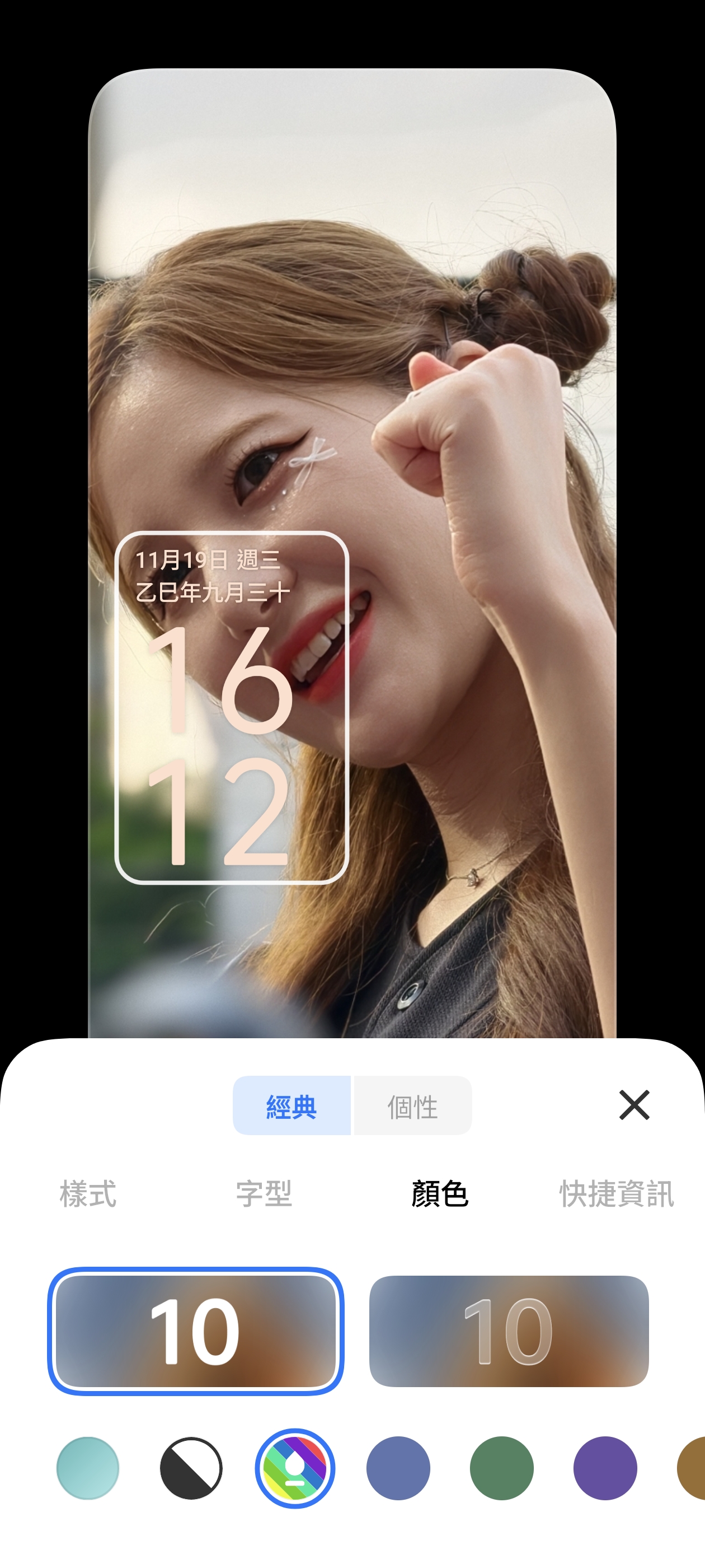在螢幕鎖定畫面中選擇「趣味光柵」,選擇上傳相簿內的四張照片,並自定日期與時間的樣式後,便可使用光柵桌布。