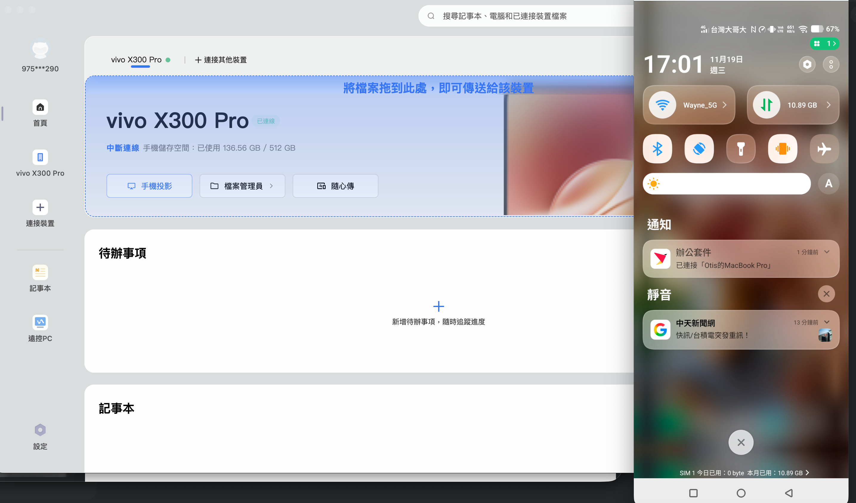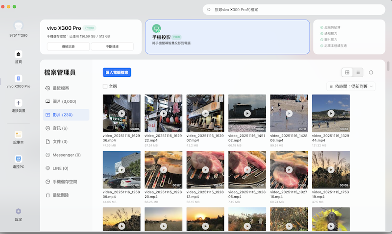 隨心傳,檔案管理功能支援在Windows或Mac電腦與手機之間自由傳輸檔案,讓蘋果生態圈的使用者,也能讓X300系列輕鬆融入生態圈。