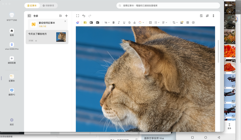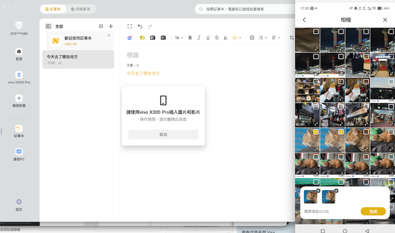 可將X300系列手機畫面投射至電腦上,並支援即時操作。同時,使用者能在電腦上處理來自手機的通知、照片與截圖,免去頻繁切換裝置的干擾。