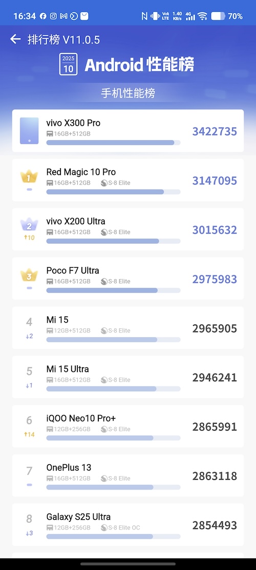 實測安兔兔V11.0.5性能,X300 Pro測得342萬分、X300測得317萬分。