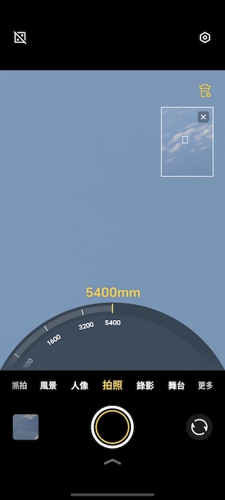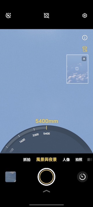 增距鏡在拍照、風景、舞台200mm、400mm、800mm、1600mm且最高到5400mm(下方照片開啟右下角的抓拍)。