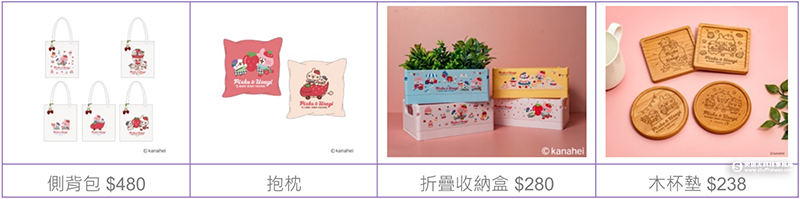 是不是總是缺一款好用的包嗎?八款不同有著P助與粉紅兔兔吃著雪糕、捧著草莓及享受聖代圖案的「側背包」,背帶上還掛著兩顆大草莓裝飾真是太可愛了啊!沙發上就是需要來個舒服的「抱枕」,兩款P助及粉紅兔兔捧草莓或騎草莓龍選擇讓你有靠又有得抱。