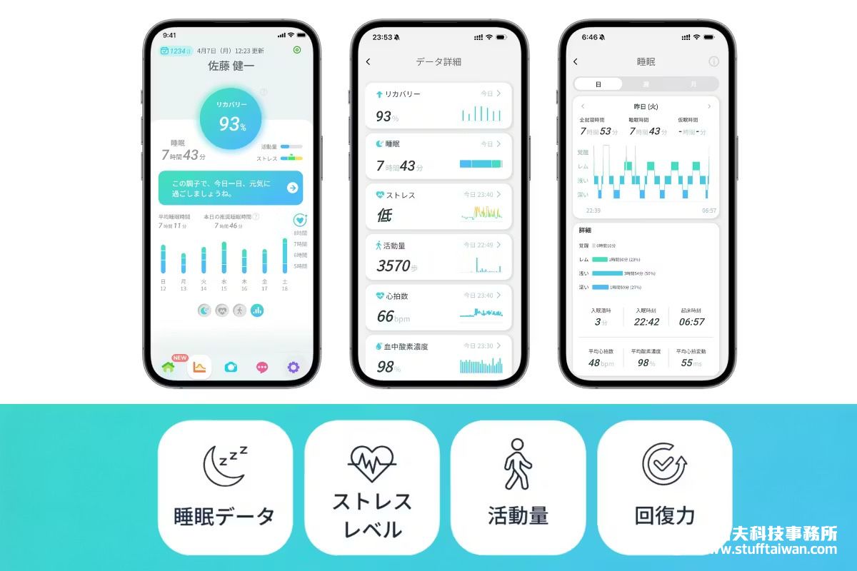 這款聯名智慧戒指是以日本issin旗下的 「Smart Recovery Ring」 為基礎打造,它透過手指收集身體數據,能夠記錄睡眠和運動數據,並可透過智慧型手機App進行查看,還能接收到AI提供的個人健康建議。
