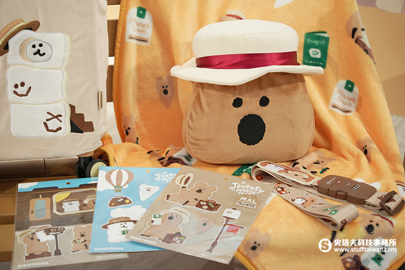 QUOKKA造型的兩用抱枕毯、行李束帶及立體絨毛刺繡貼紙也在提供旅行愉快心情之餘,增加途中的舒適度和便利性,讓療癒氣氛伴你一整路!